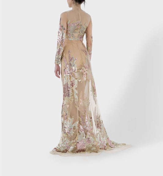 Sheer Sequin Embellished Dress
