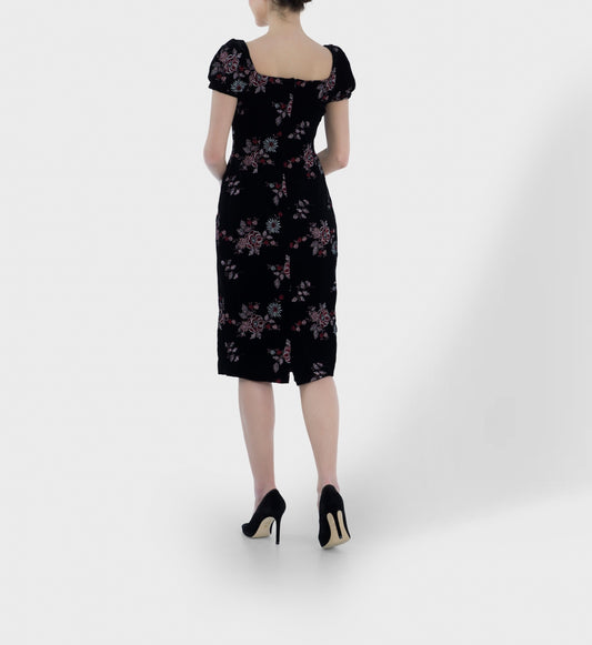 Velvet Midi Dress (Embroidered)