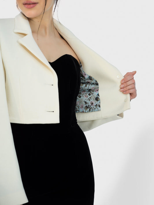 Wool and Silk Crepe Cropped Jacket
